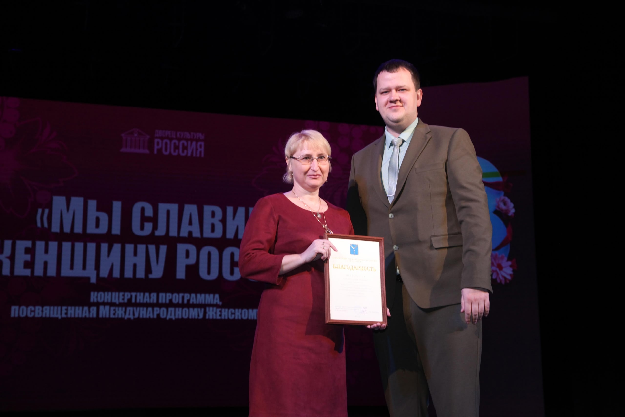 4 марта в театральном зале Дворца культуры «Россия» прошло торжественное мероприятие «Мы славим женщину России», посвящённая Международному женскому дню