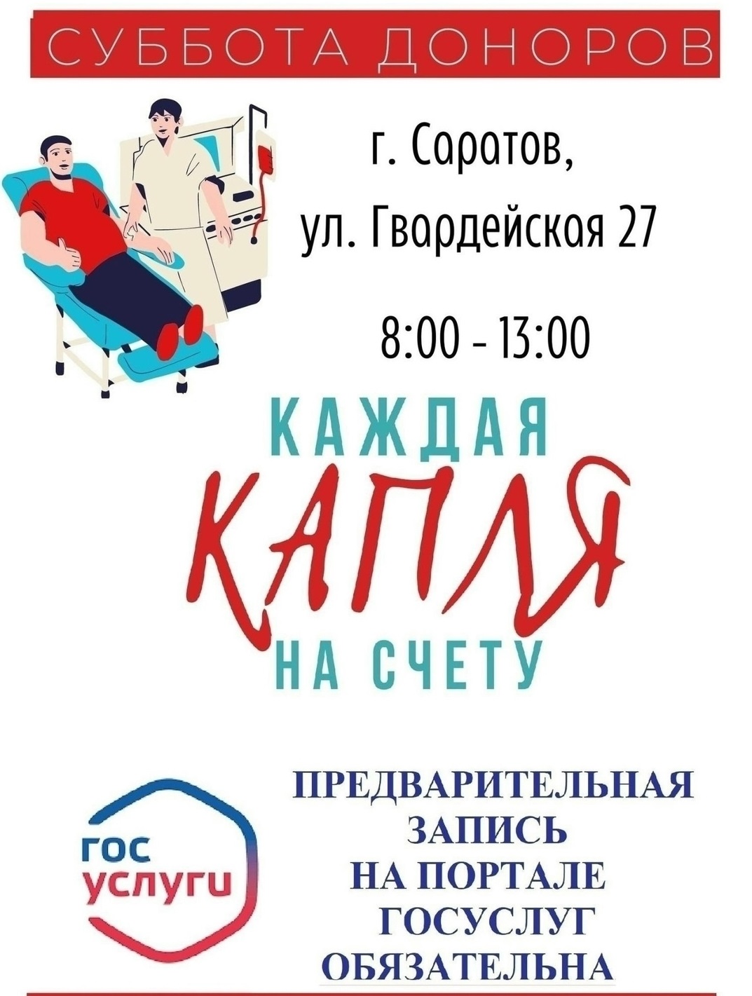 💢 ВНИМАНИЕ ДОНОРАМ 💢 ❗ На портале ГОСУСЛУГ открыта предварительная запись на «Субботу Доноров!» 📅 16 МАЯ в субботу, Центр крови будет РАБОТАТЬ с 7.30 до 13.00. 📝 Приём доноров будет вестись ТОЛЬКО ПО предварительной ЗАПИСИ через портал ГОСУСЛУГ 💻 Записаться на донацию донор может на Едином портале государственных услуг в разделе «Здоровье» (подраздел «Донорство […]